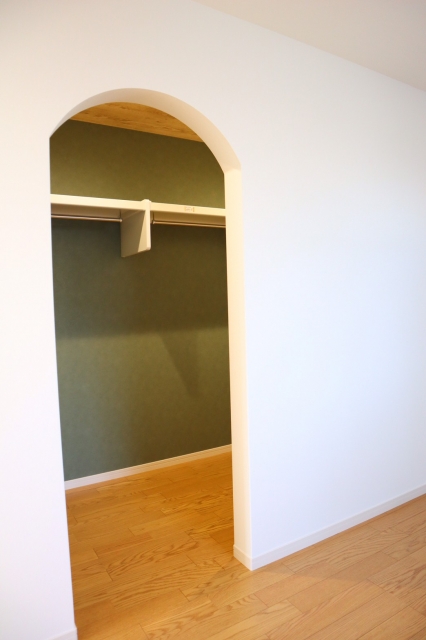 リビングの他、寝室の収納スペースにもアーチ壁が設置できます。